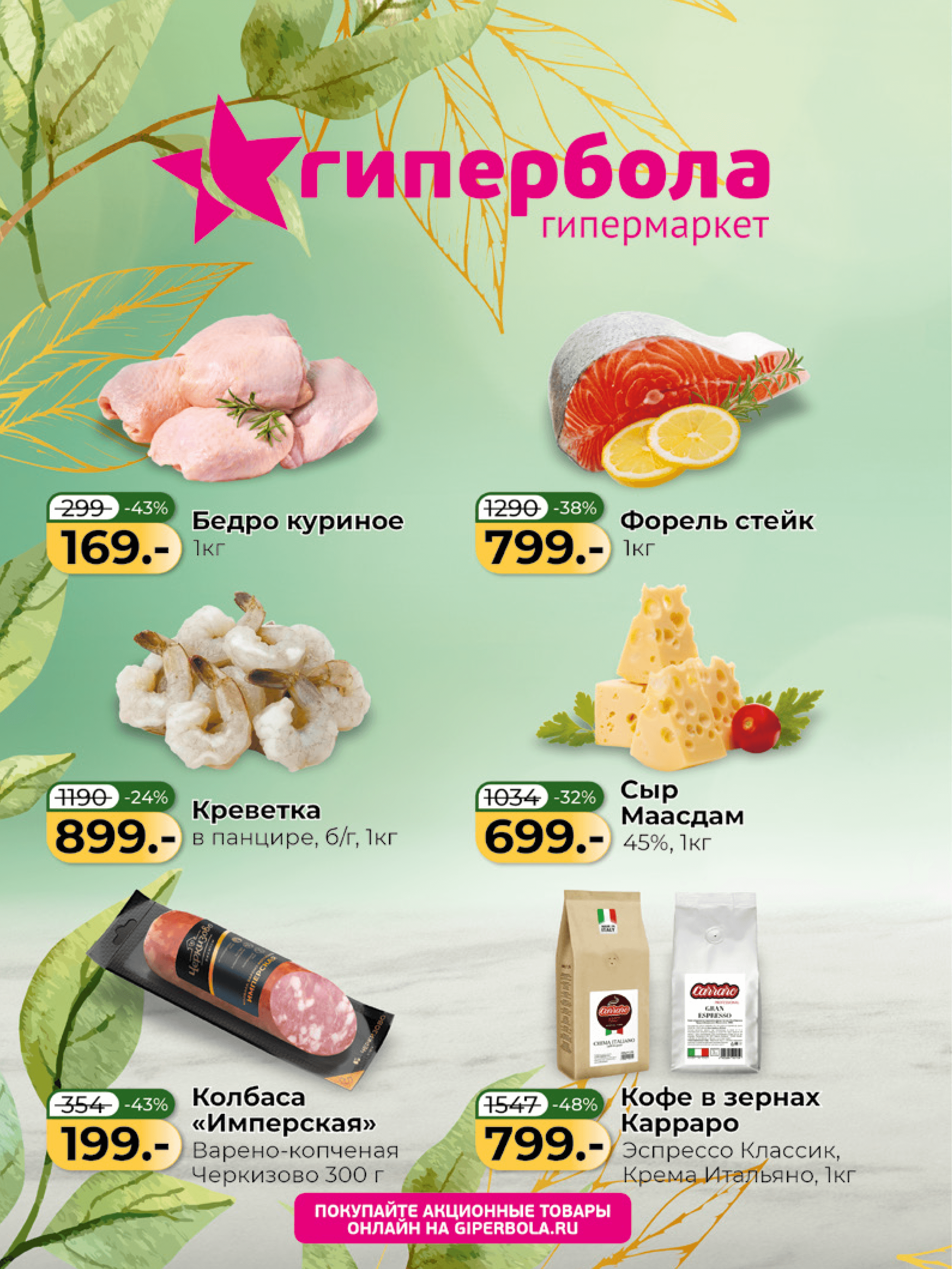 - Специальные предложения выделены желтым ценником.