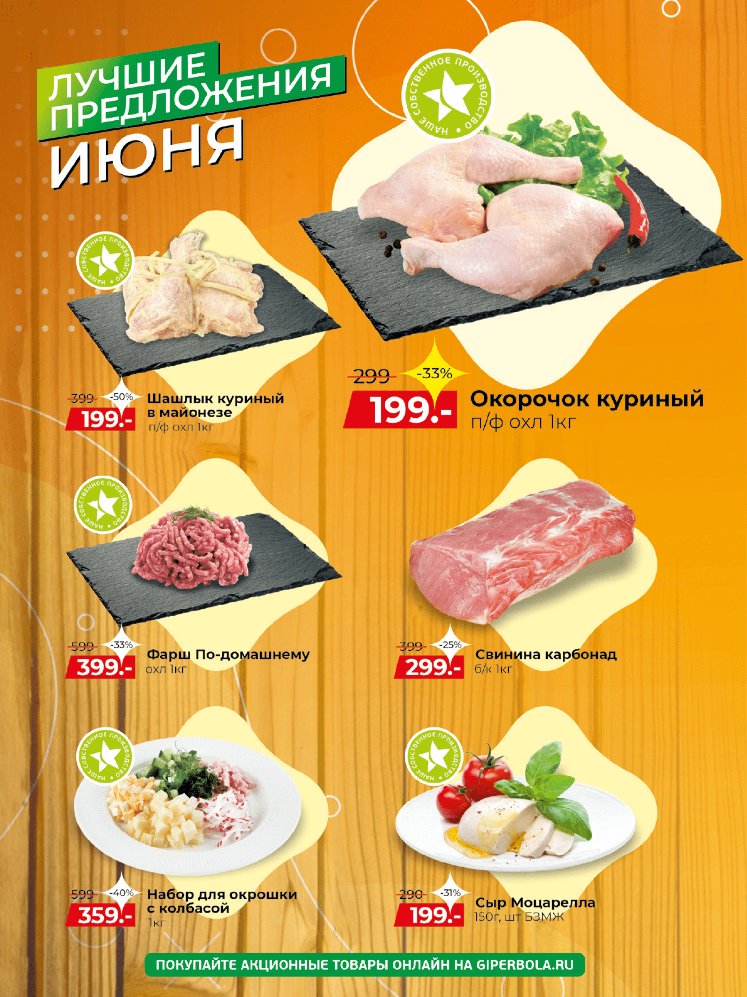 – Полуфабрикат охлажденный — куриный шашашлык в маойнезе — производства «Гиперболы» всего за 199 ₽/кг вместо 399 ₽/кг!
